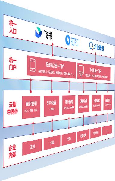 对协作平台提供支持服务,,支持企业应用与协作平台对接,,,,包含组织同步、、消息集成、、待办集成等。。。。支持目前主流的协作平台:钉钉、、企微和飞书。。。。